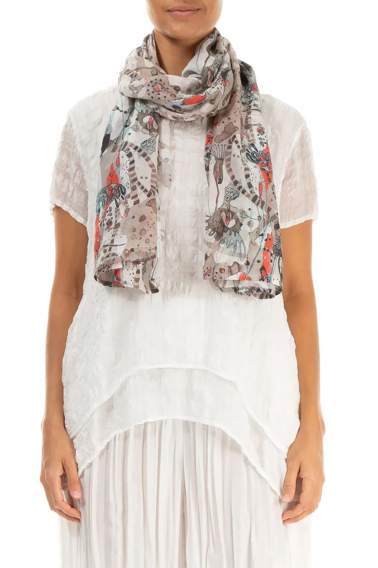 Grizas Silk Mix Scarf In Stone Multi