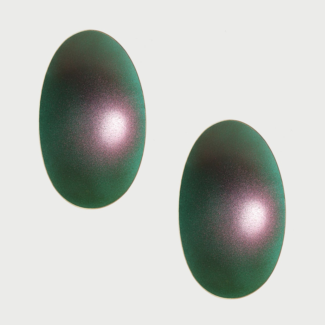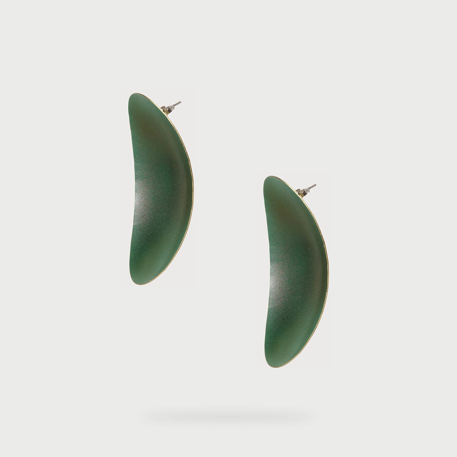 Simplicity stars in these earrings and proves its stylistic power. The curvy metal surface favors the light’s reflections and highlights the unique iridescent sparkles that add modern attitude to the look.