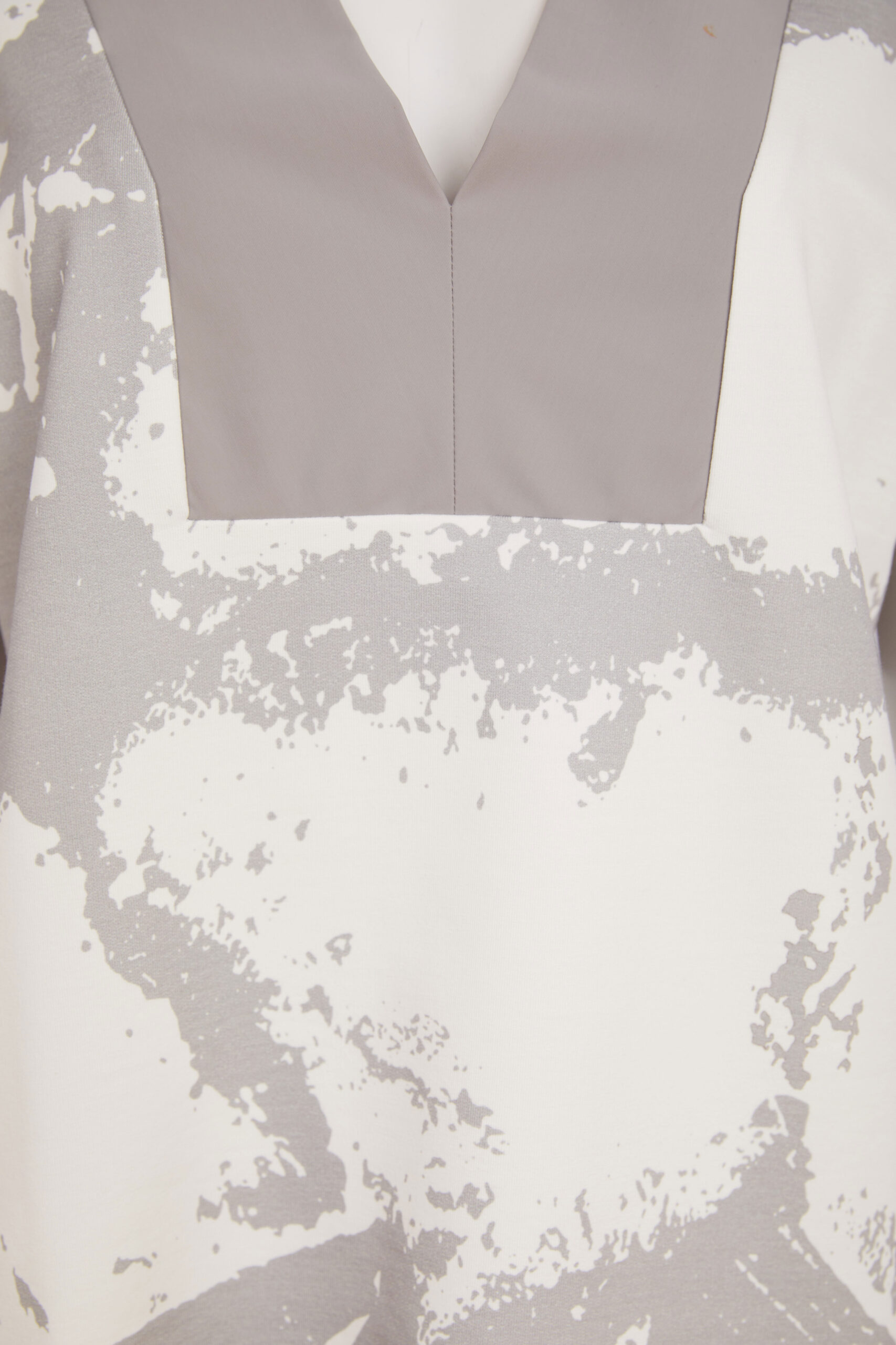 Naya Graphic Print V Neck Top In Grey And White