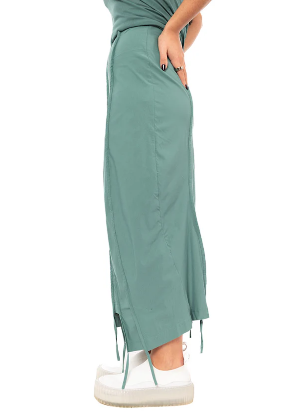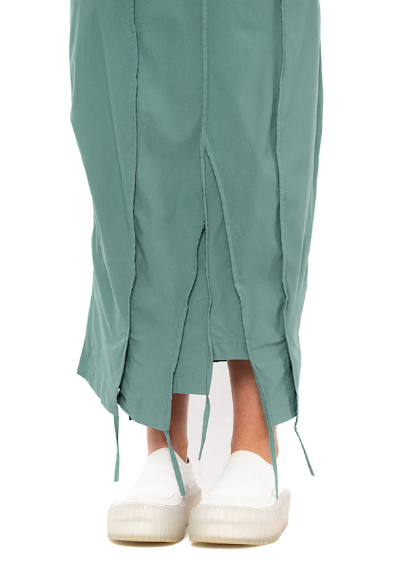 Rundholz do it again with their designs!  This gorgeous skirt in a brilliant grassy shade of green which is quite unusual, has a fitted look for which the brand is known.  Crafted from a viscose blend stretch fabric, the skirt is shaped through the body before flaring slightly towards the hemline.  The use of darting to exaggerate the design is on show, and the hemline itself is finished with a vent to the front and hanging tabs.  This longline skirt has no zip or buttons, so you simply pull it on and you’re ready.  Edgy, cool and so very Rundholz!