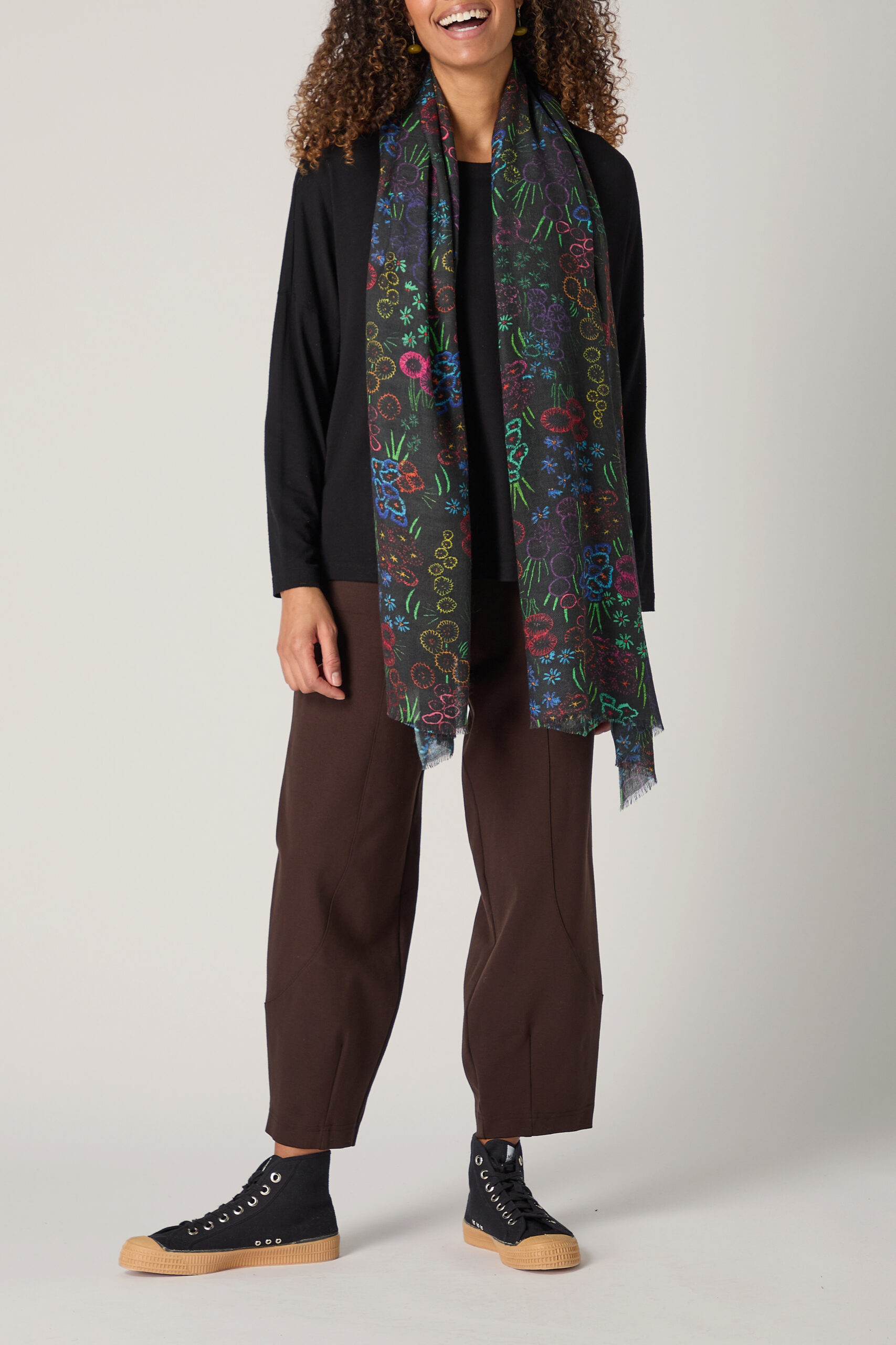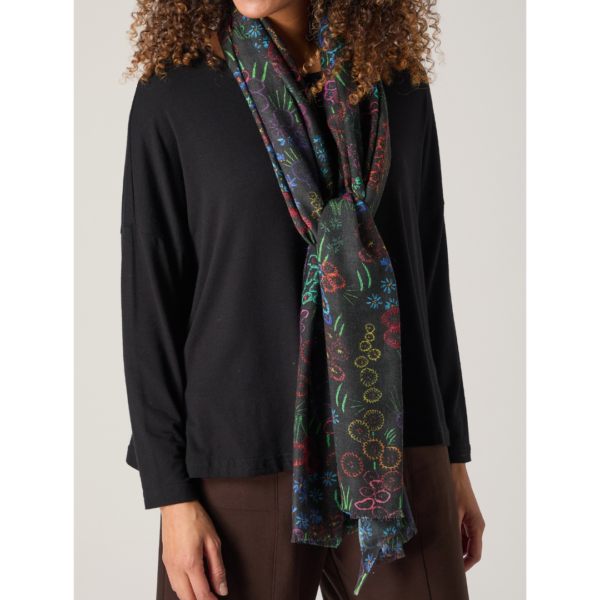 So pretty! This is such a lovely scarf from Sahara which showcases a captivating embroidered floral print, in so many colours including rich hues of coral, mint green and azure blue.  The perfect companion for chilly days, this scarf is made from 100% wool yet it is so lightweight and comfortable to wear.  Easy to tie without adding too much bulk, it looks great with any colour scheme or you can choose to wear it as a shawl instead.  Whatever way you wear it, this scarf will bring colour to inspire you.  Gorgeous!