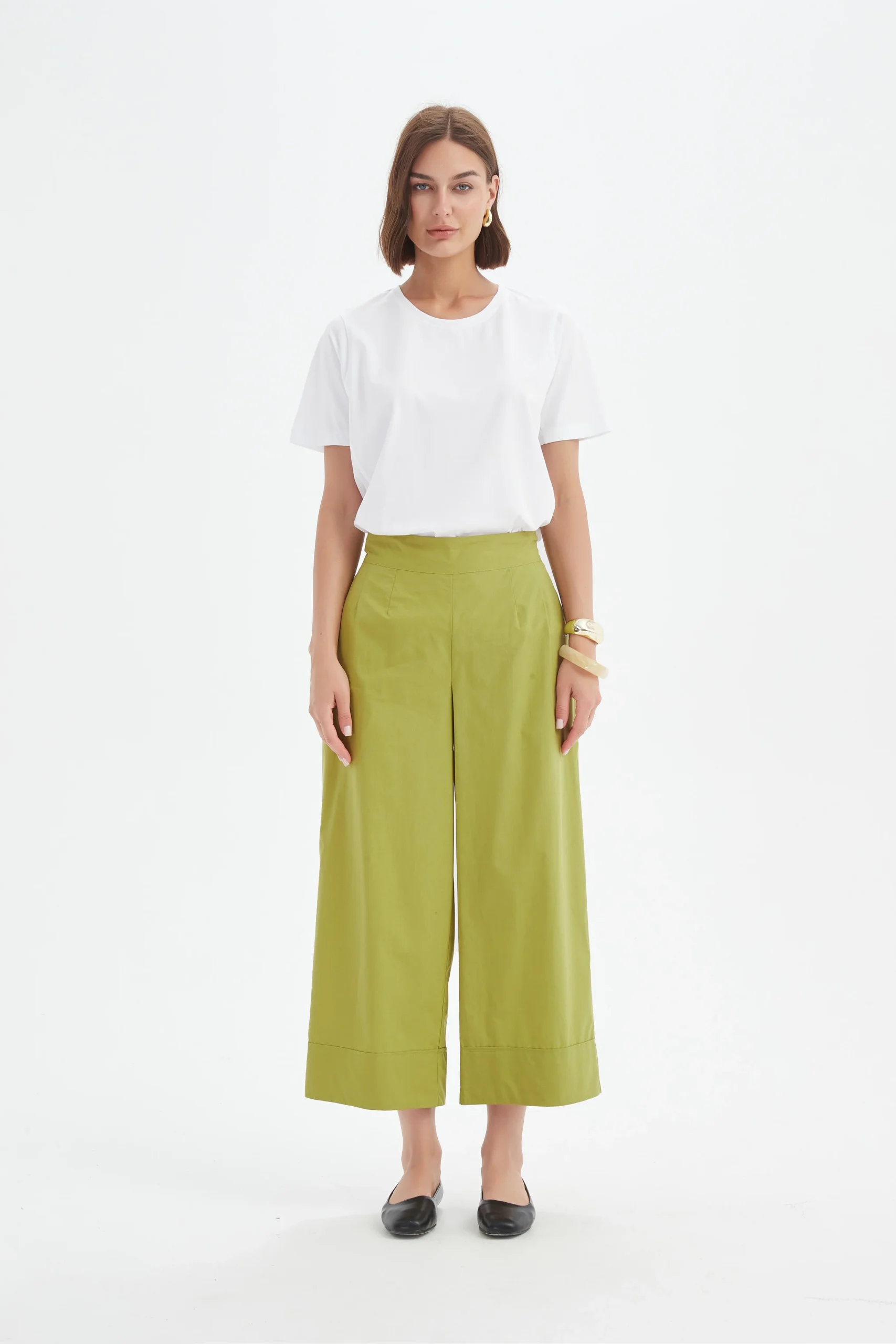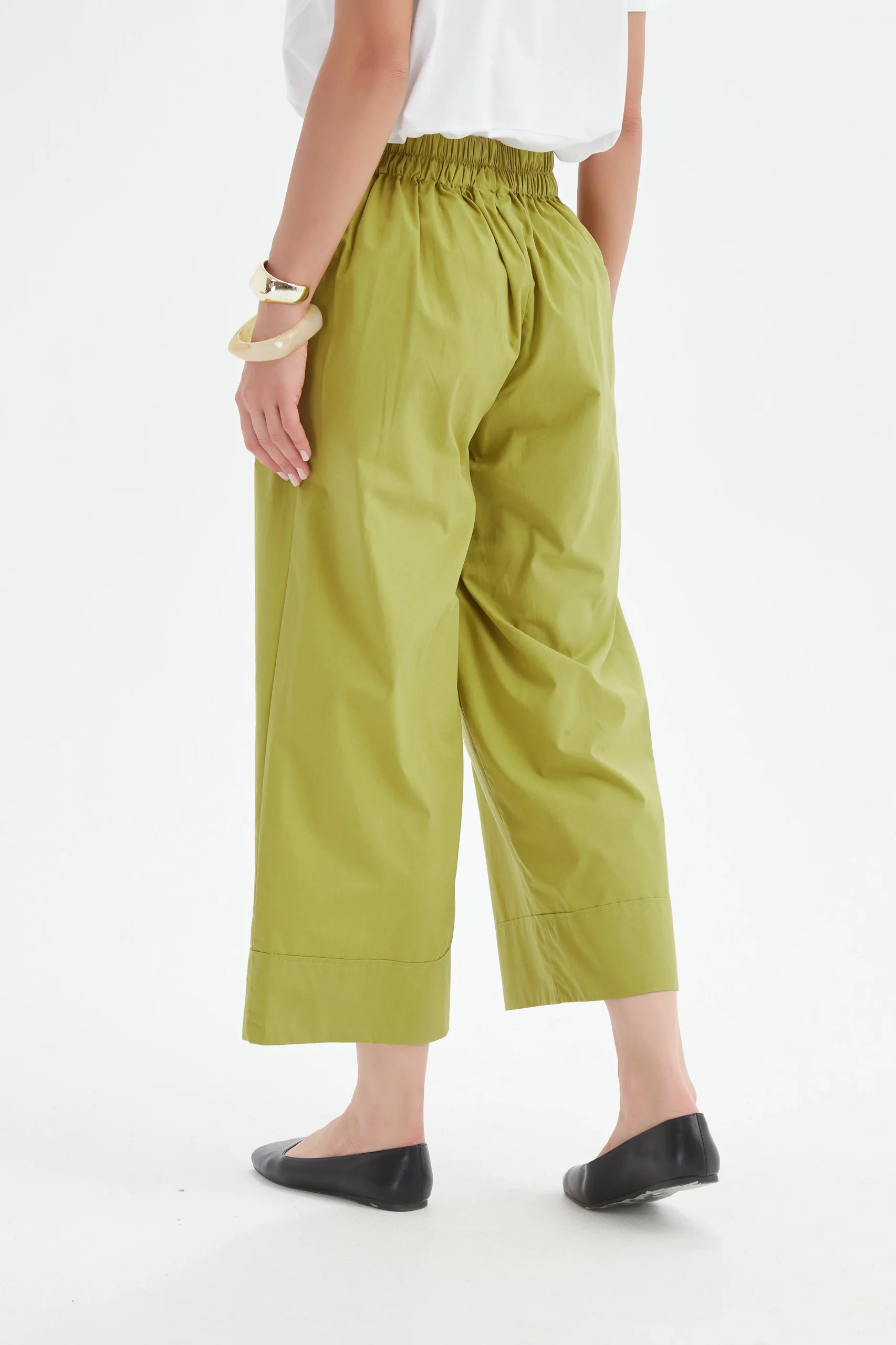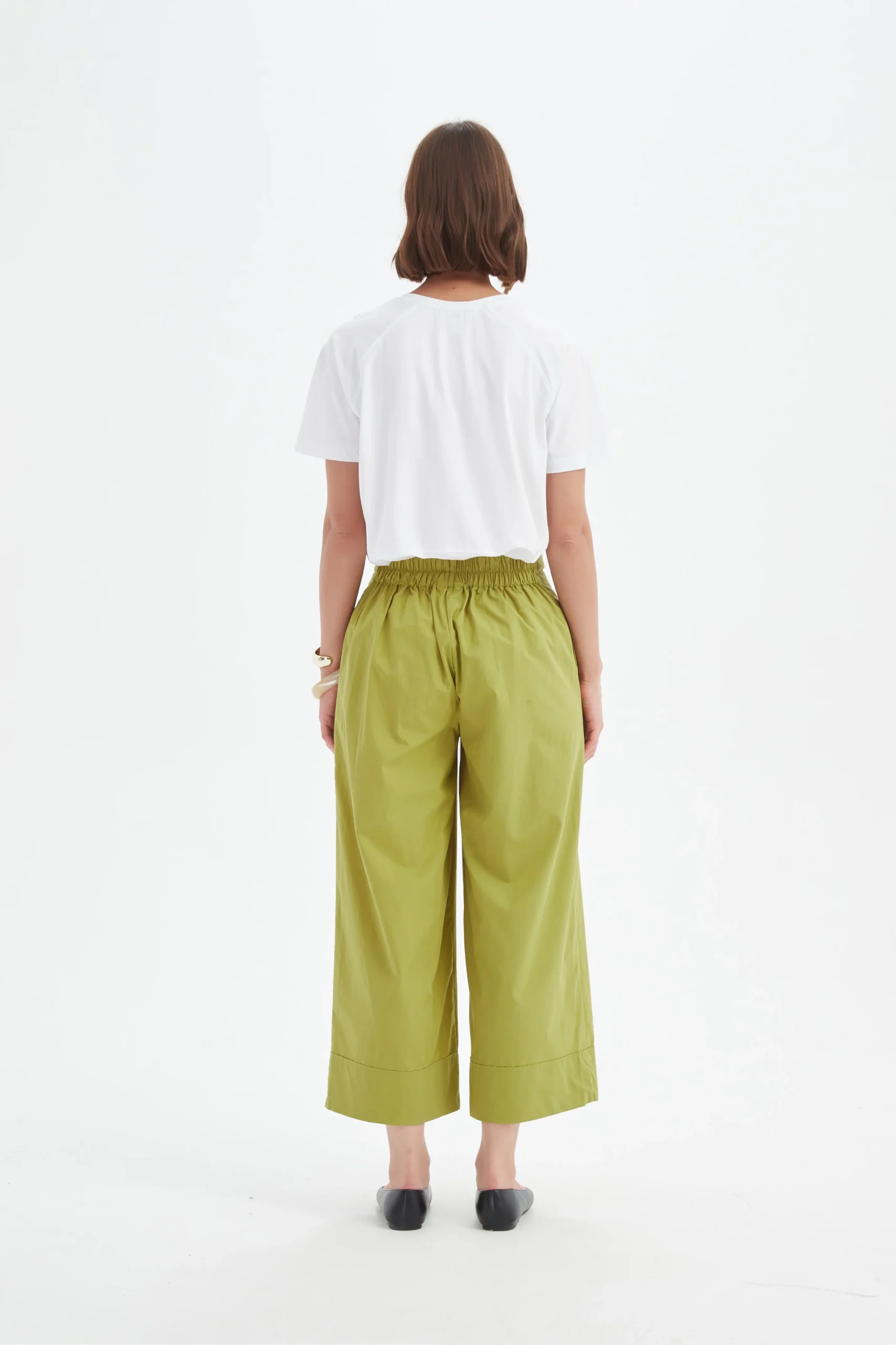 These great trousers from Australian brand Tirelli will bring a brilliant pop of colour to your collection this Spring/Summer.  Whether you are pairing these with matching elements in the same range or adding this fabulous split pea green to your neutrals or contrasting it with navy or black, these trousers are lightweight and comfortable.  Crafted from a soft cotton–lyocell blend, they bring a smooth hand feel and breathable fabric with a great shape too.  Featuring an elastic back for ease, wide waistband and hem for structure, and practical side pockets, the ankle-length makes them easy to wear with sandals or sliders.  Cool, relaxed and stylish…fab!